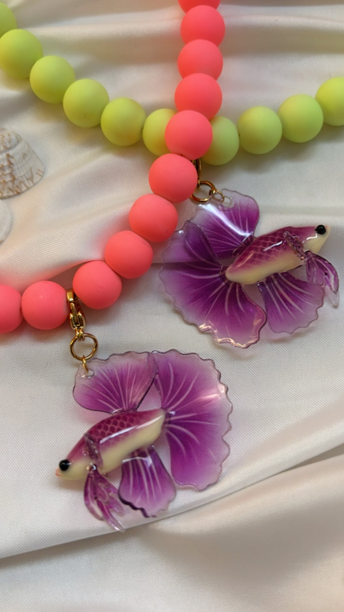 ¡Únicos dos!!! En coral neon o en amarillo neon. Sus cuentas, una delicia a la vista y al tacto. ¡¡¡Son hermosos!!!
